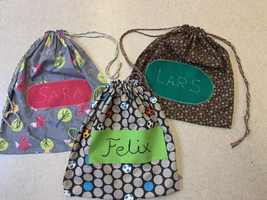 - Brodera namnet eller det sy på maskin.